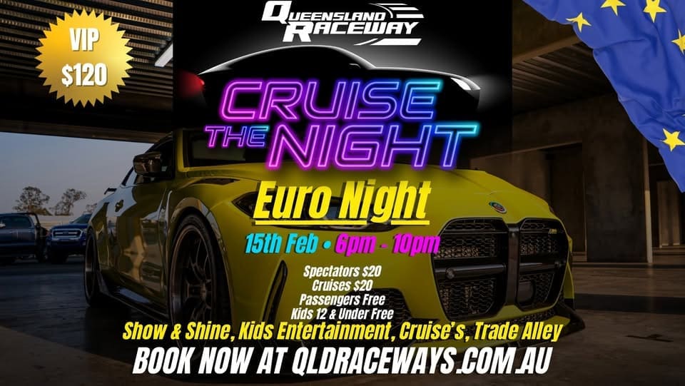 Feb 15 6:00 pm - 9:00 pm Cruise The Night – Euro Night – Willowbank QLD 133 Champions Way, Willowbank , Willowbank, QLD, Australia, Queensland 4306 133 Champions Way, Willowbank , Willowbank, QLD, Australia, Queensland 4306 Event Details Get Directions